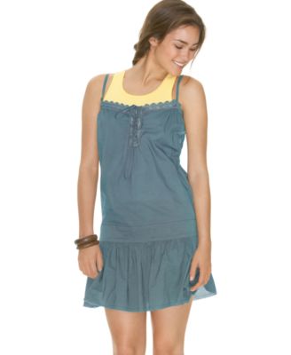 蕾丝边系带吊带裙